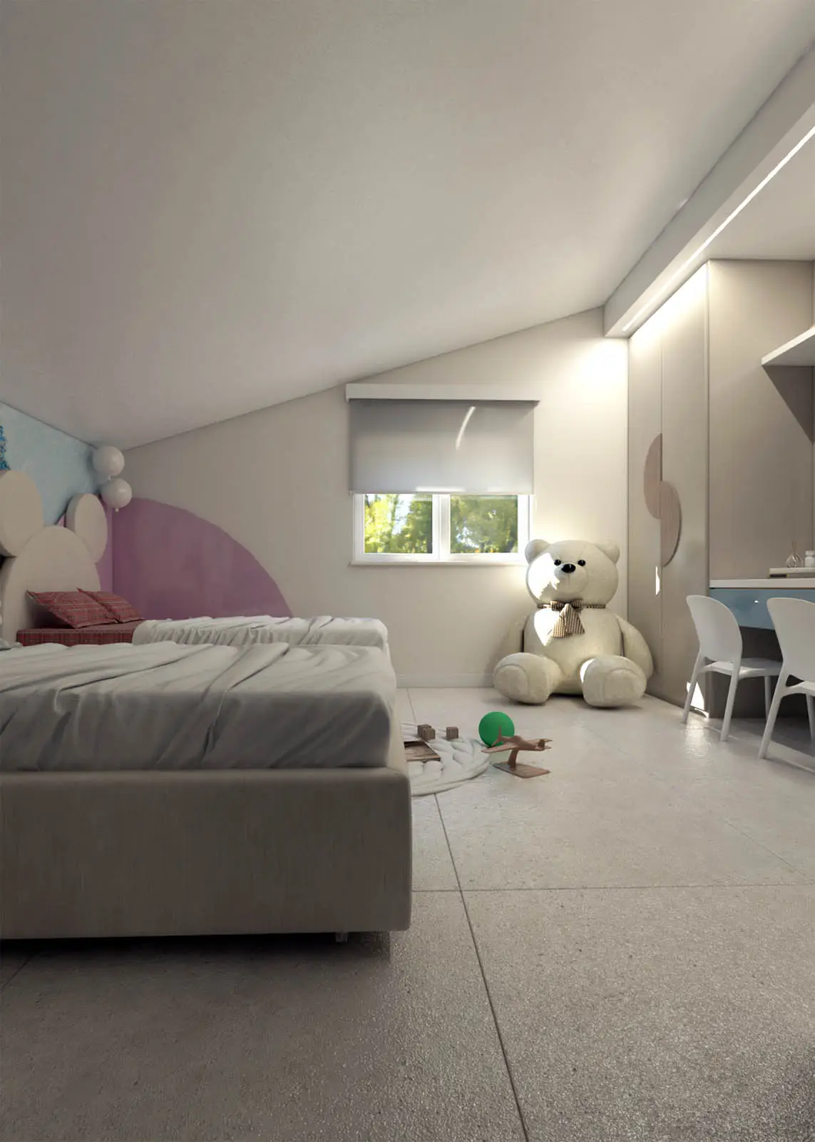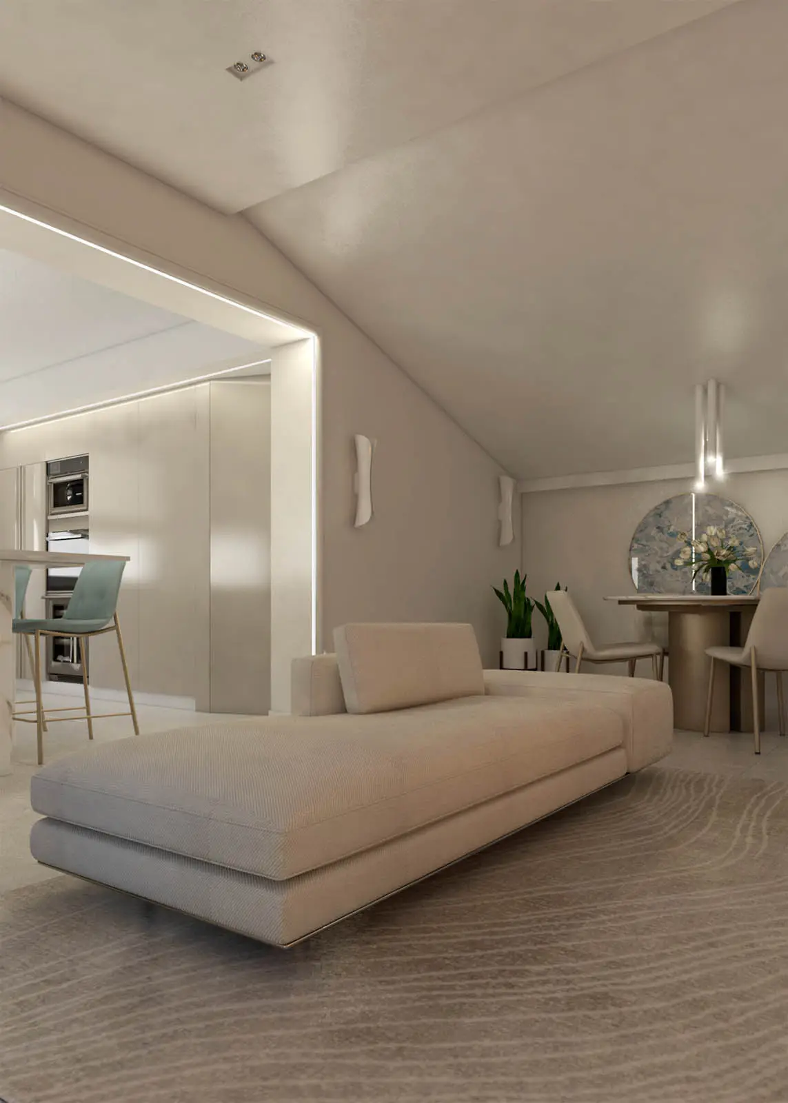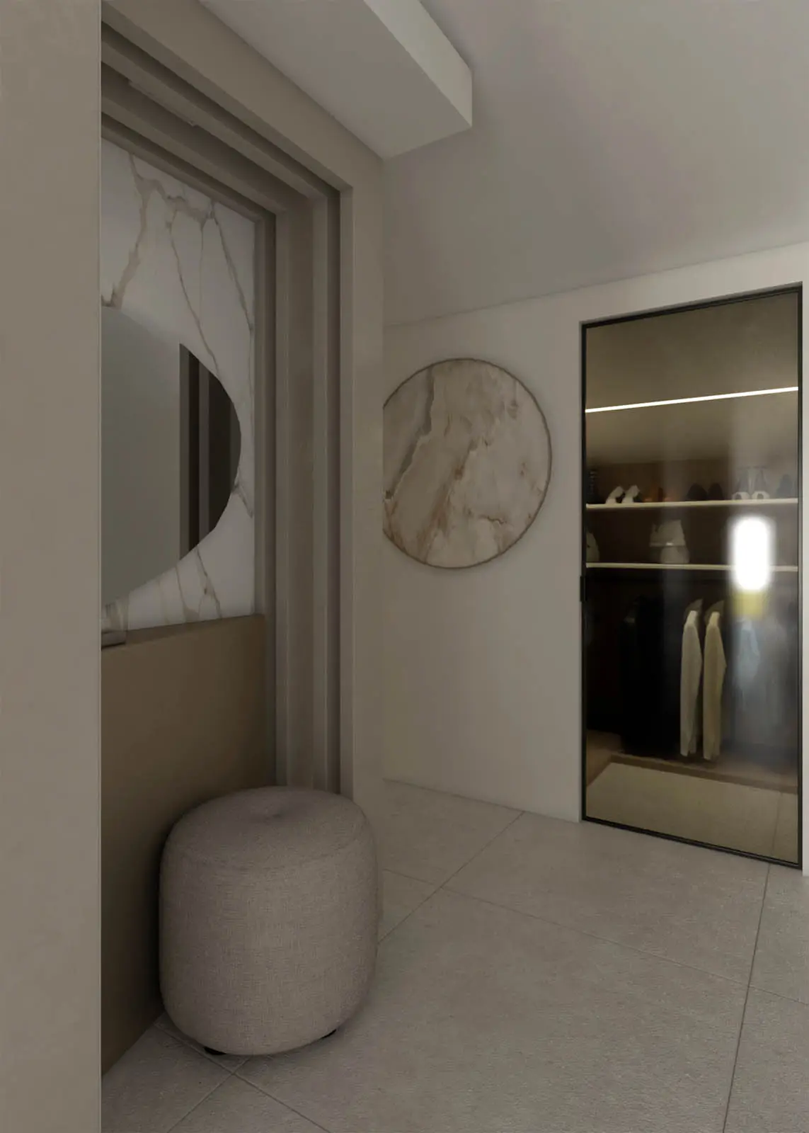 Progettazione in stile classico-contemporaneo di un appartamento mansardato sito a Colfelice. Toni chiari e aspetto elegante (Lorenzo Rotondi – Elisa Quaglieri)