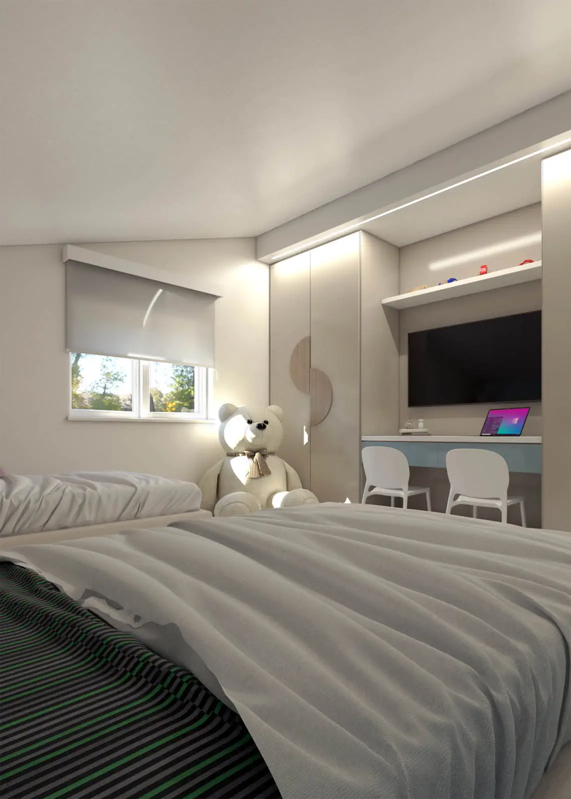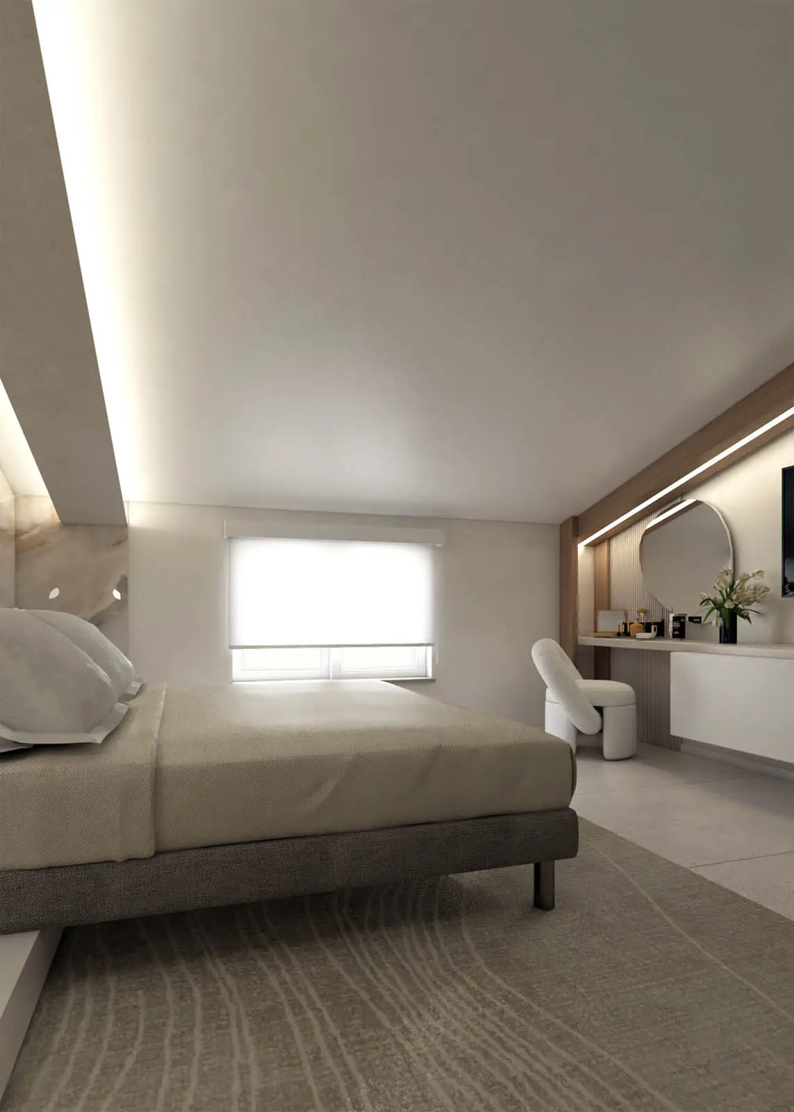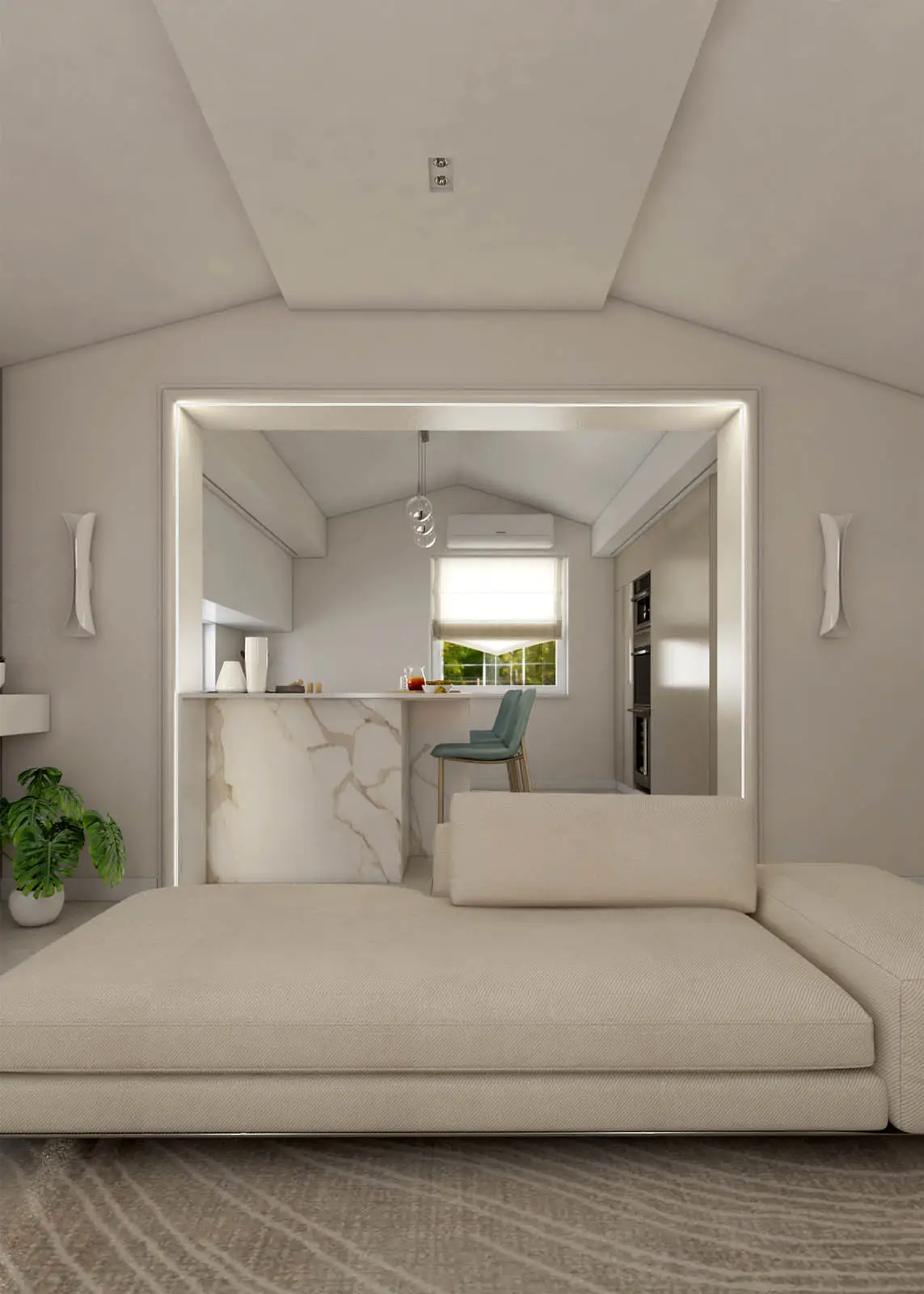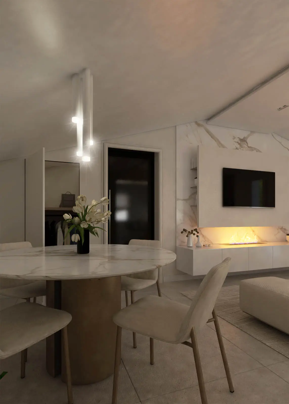 Progettazione in stile classico-contemporaneo di un appartamento mansardato sito a Colfelice. Toni chiari e aspetto elegante (Lorenzo Rotondi – Elisa Quaglieri)